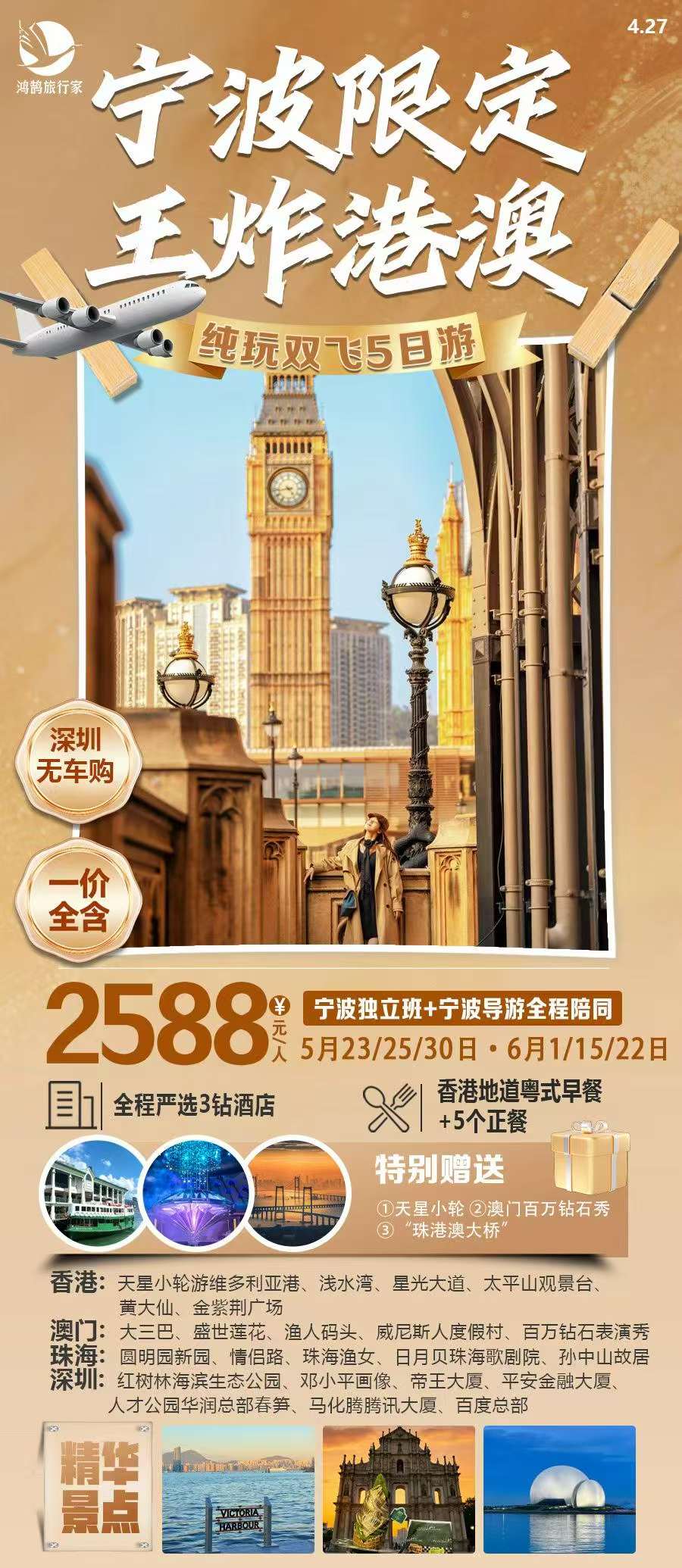 香港、澳门、深圳、珠海 5天4晚