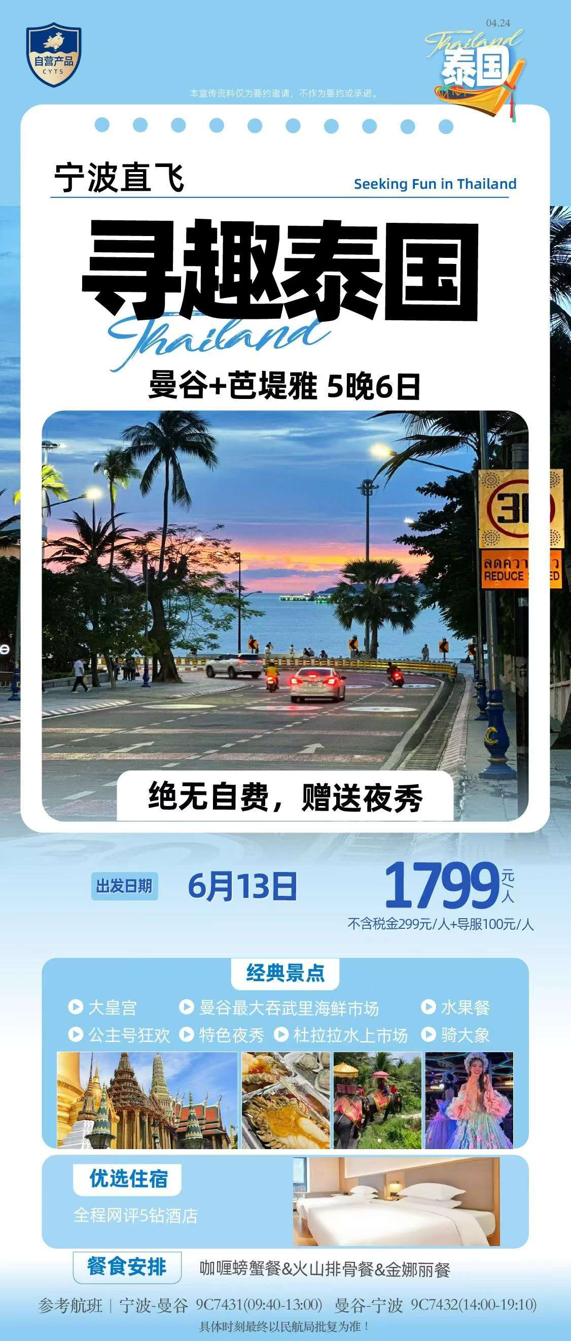 龙旅国际旅游股份有限公司宁波分公司 国家AAAAA级旅行社/出境出国旅游组团社/中国旅行社协会理事单位 转载请注明:宁波假日旅行社 http://www.nb-hts.com/chujing/2026429145734.html 上一篇:【舌尖上的泰国】曼谷+芭堤雅+沙美岛 5晚6天 下一篇:【王炸港澳】港澳深珠纯玩双飞5日游 |