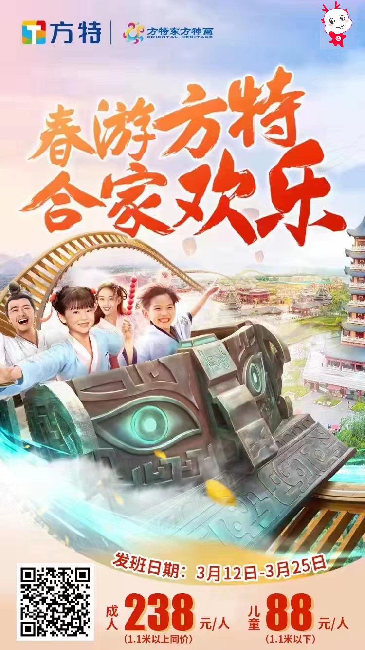 ------------------------------------------------------------------------------ 春游方特、合家欢1天 {方特}3月12日-25日天天发班,详见海报,价仅238元/人……