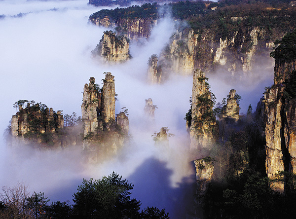 ------------------------------------------------------------------------------ ![]() 张家界国家森林公园以峰称奇,以谷显幽,以林见秀,三千座石峰拔地而坡,形态各异,峰林间峡谷幽深,溪流潺潺。春天山花烂漫,花香扑鼻;夏天凉风习习,最宜避暑;秋日红叶遍山,山果挂枝;冬天银装素裹,满山雪白。公园一年四季气候宜人,景色各异,是人们理想的旅游、度假、休闲目的地。